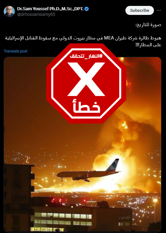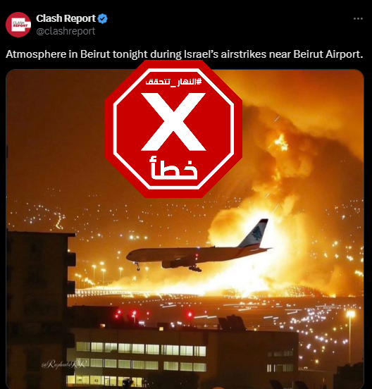 صورة الطائرة التي تهبط في مطار بيروت خلال غارة إسرائيليّة غير حقيقيّة FactCheck#