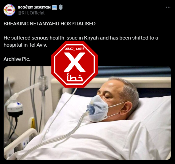 فالبحث العكسي يبيّن، اولا، ان تداولها قديم، اذ انتشرت خلال العام الماضي، مع أخبار مزعومة عن "تدهور الوضع الصحي لنتنياهو" في مواقع ووسائل التواصل الاجتماعي. الا ان ايا من وسائل الاعلام الاسرائيلية، او وكالات الانباء العالمية والمواقع الاخبارية الجدية وذات صدقية لم تنشرها.