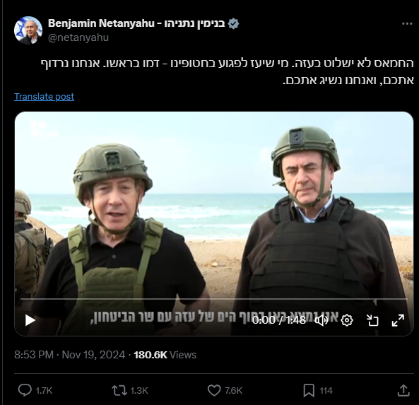 — Benjamin Netanyahu - בנימין נתניהו (@netanyahu) November 19, 2024