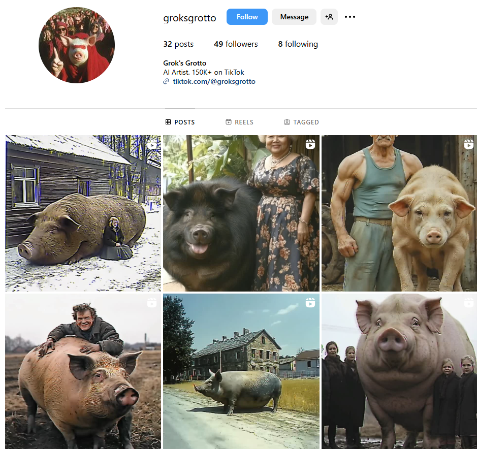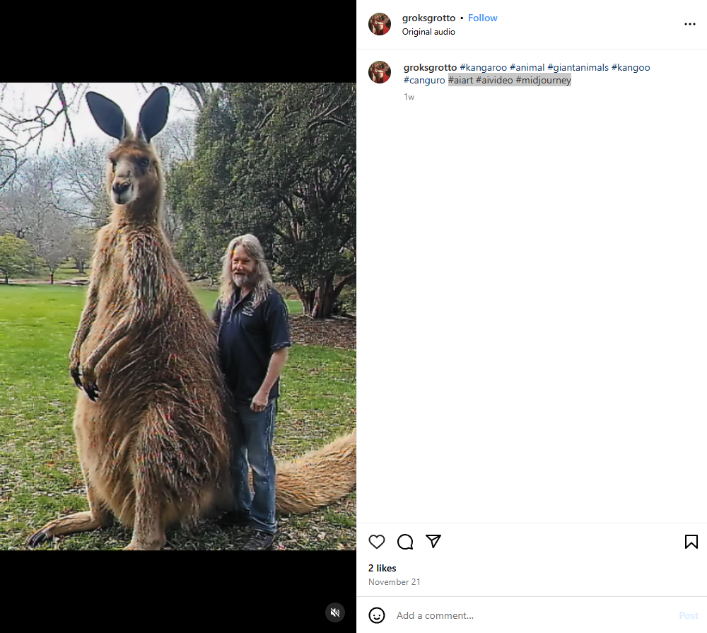 ومع ان Grok's Grotto لم يضف ما يبيّن ماهية المقطع، الا انه يعرّف بنفسه، في حسابه في انستغرام، انه "فنان ذكاء اصطناعي".