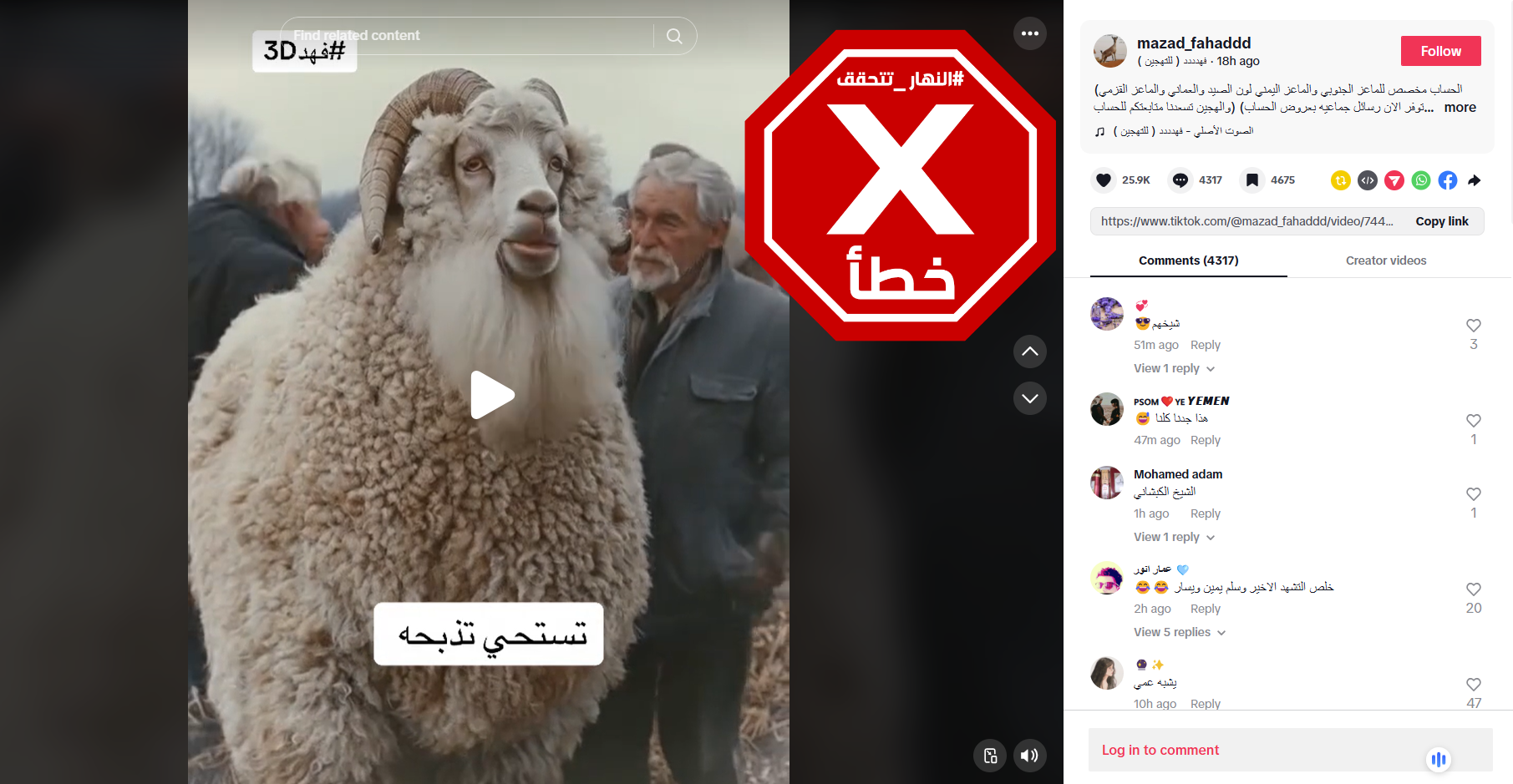 الحقيقة: مشاهد الماعز في هذا الفيديو ليست حقيقية، لكونها منشأة بواسطة برنامج ذكاء اصطناعي. FactCheck#