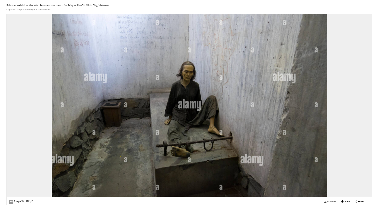 الحقيقة: ما تشاهدونه هو تمثال لسجين في زنزانة في متحف مخلفات الحرب War Remnants Museum في مدينة هوشي منه بفيتنام. FactCheck#