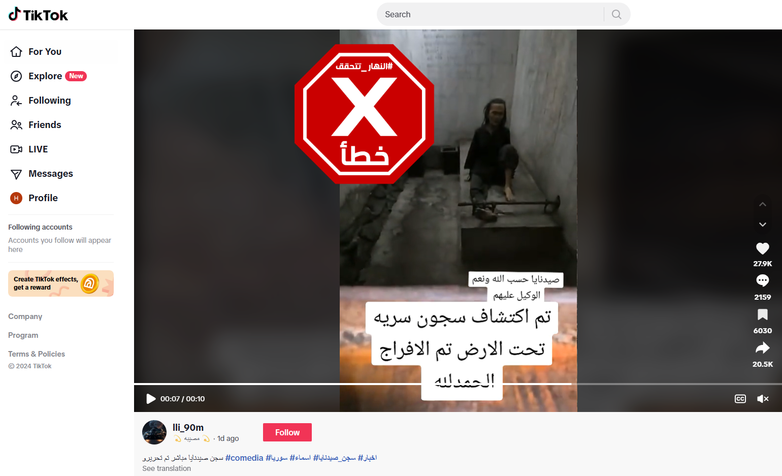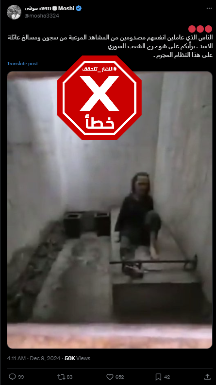 وجاء تداول المشاهد بالمزاعم الخاطئة في وقت تتواصل في سوريا اليوم الإثنين عمليات بحث مكثّفة عن معتقلين في زنزانات تحت الأرض في سجن صيدنايا، أكبر السجون السورية الذي تفيد منظمات غير حكومية بتعرّض المساجين فيه للتعذيب، بينما تستمرّ الاحتفالات في دمشق بسقوط حكم بشار الأسد في أعقاب هجوم خاطف نفّذته فصائل المعارضة، وفقا لما ذكرت وكالة "فرانس برس".