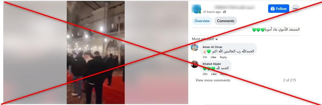 أما الفيديو المتداول على أنّه من الجامع الأموي فلم يصوّر في سوريا.