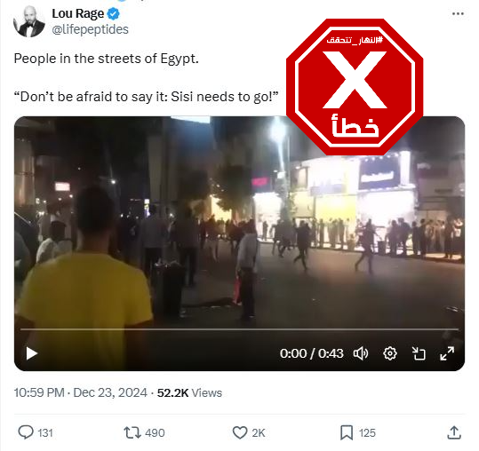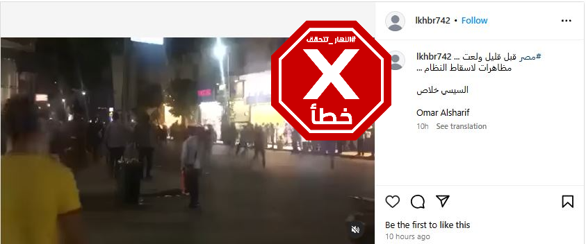 تظهر المشاهد الليلية أشخاصا يمشون في شارع، هاتفين: "قول متخافشي السيسي لازم يمشي". وقد تكثف التشارك في الفيديو خلال الساعات الماضية في وسائل التواصل الاجتماعي، لا سيما عبر الواتساب، مرفقا بالمزاعم الآتية (من دون تدخل): "مصر قبل قليل ولعت... مظاهرات لاسقاط النظام"، وايضا "الشعب المصري: قول ما تخفشي السيسي لازم يمشي مظاهرات عارمة في مصر تطالب باسقاط النظام ورحيل السيسي".