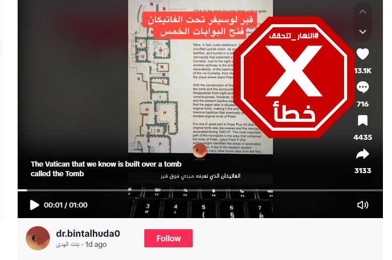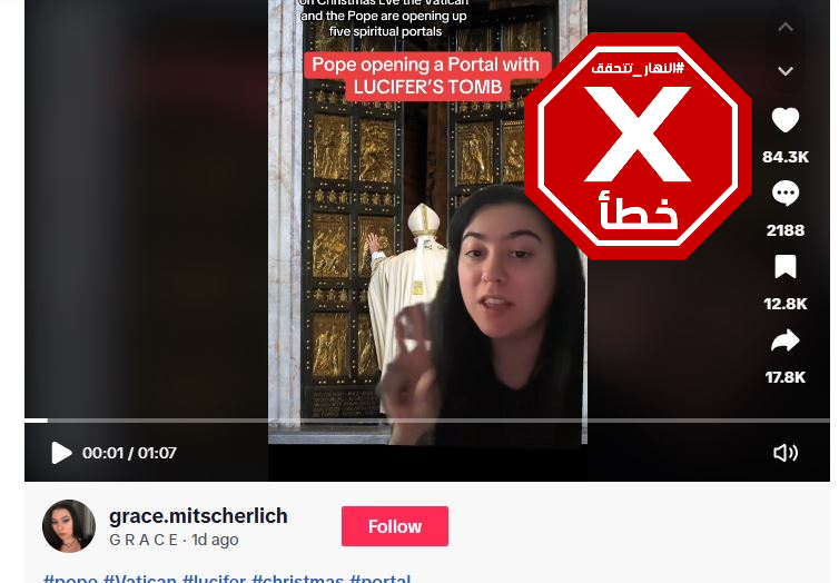المتداول: فيديوات يدّعي ناشروها أن "الفاتيكان مبني فوق قبر لوسيفر او الشيطان"، وان "البابا فرنسيس سيفتحه ضمن خمس بوابات"، في إطار فعاليات يوبيل 2025.