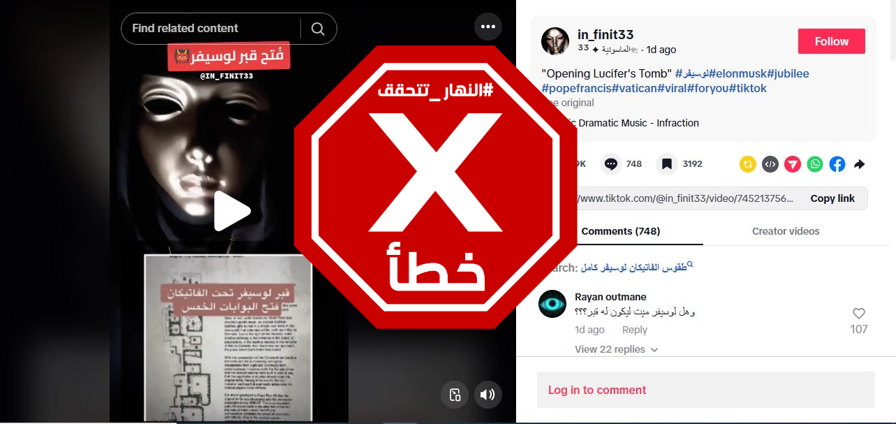 الحقيقة: قبر لوسيفر المشار اليه هو أحد القبور في مقبرة الفاتيكان الاثرية Vatican Necropolis، التي تعود الى عهد الإمبراطورية الرومانية، قبل تأسيس المسيحية كدين مهيمن في روما، وقبل أن يكون لاسم لوسيفر (الشيطان او ابليس) أي ارتباط بالشيطان. كذلك، لن يفتح الفاتيكان "خمس بوابات الى عوالم أخرى" او "شيطانية"، بل خمسة أبواب مقدسة، وذلك في تقليد قديم في الكنيسة الكاثوليكية، في مناسبة يوبيل 2025. ولا تشمل هذه الابواب قبر لوسيفر او اي قبر في مقبرة الفاتيكان. FactCheck#