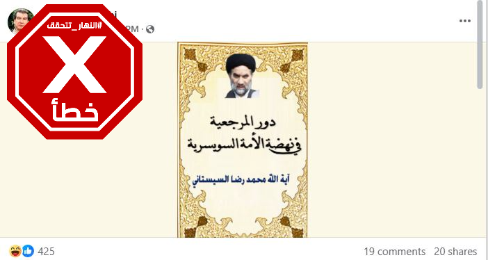 هذه الصورة مفبركة وليست لمؤلف وضعه ابن المرجع العراقي السيستاني FactCheck#