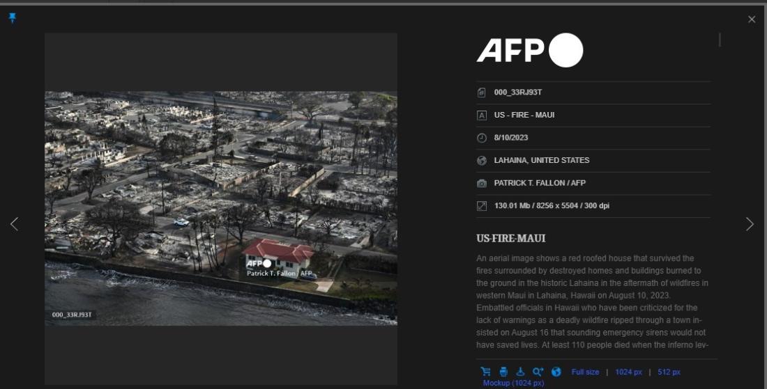 وبحسب مصوّري وكالة فرانس برس، تُظهر الصورة الملتقطة من الجوّ منزلاً نجا من الحرائق في لاهانيا في جزيرة هاواي.