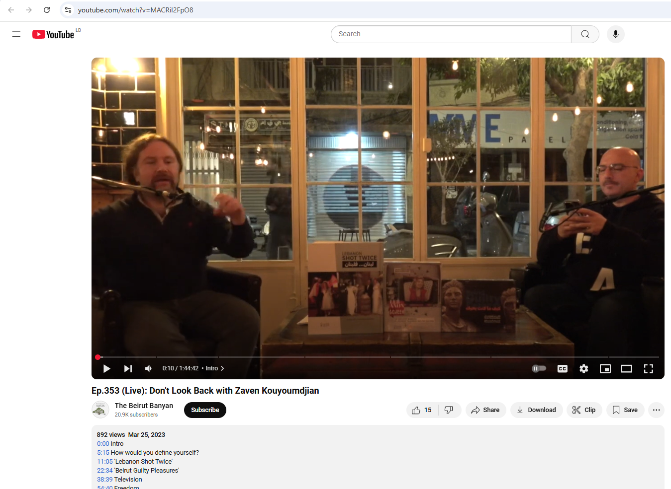 ويمكنكم مشاهدة المقابلة الاصلية مع قيومجيان منشورة في حساب The Beirut Banyan في يوتيوب، في 25 آذار 2023. و"تكلّم خلالها على كتابين له، وتطرق الى مسيرته التلفزيونية، ودوره داخل المؤسسة السياسية/الإعلامية".
