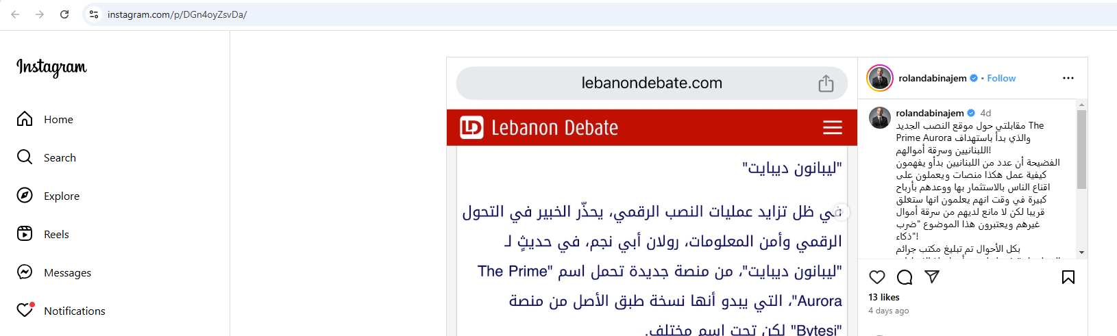بدوره، حذر الخبير في الامن السيبراني والتحول الرقمي رولان ابي نجم، في منشور في حسابه في انستغرام، من "موقع نصب جديد" ورد اسمه في المقابلة الكاذبة مع قيومجيان، و"بدأ استهداف اللبنانيين وسرقة أموالهم". واشار الى انه "تم تبليغ مكتب جرائم المعلوماتية في لبنان وبدأ اتخاذ الإجراءات اللازمة".