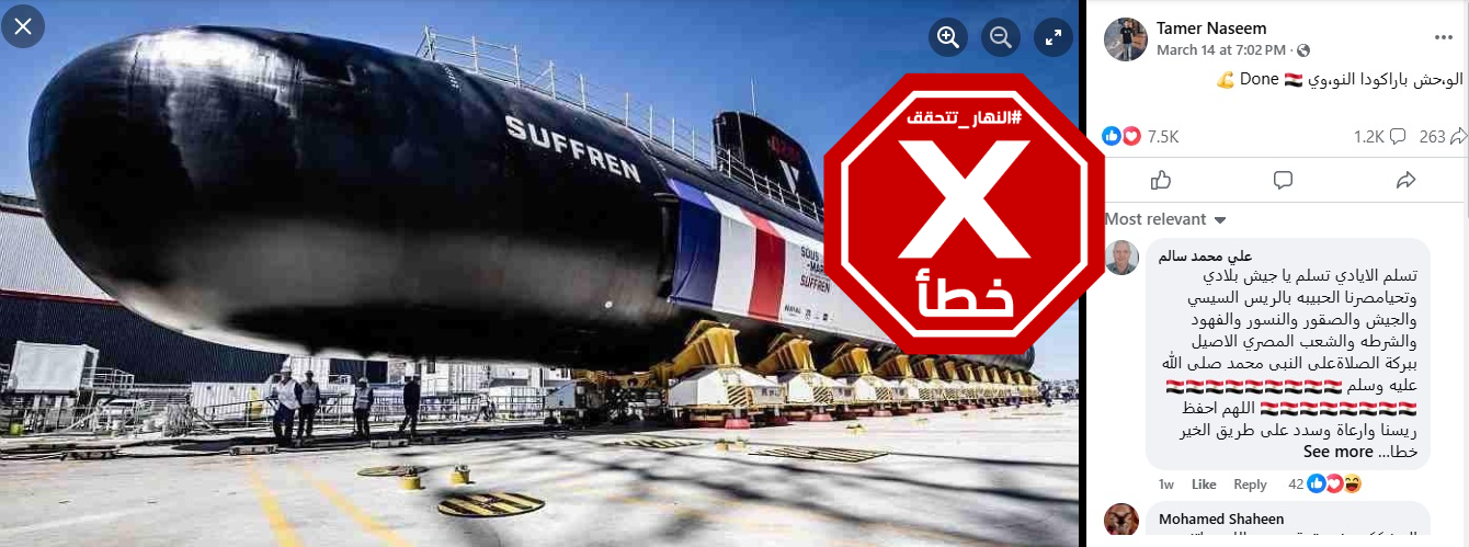 نشرت حسابات على موقع التواصل الاجتماعي الأشهر في مصر فايسبوك صورة لغواصة نووية فرنسية بمزاعم أن مصر حصلت عليها. الا ان هذا الزعم غير صحيح تماما. FactCheck#