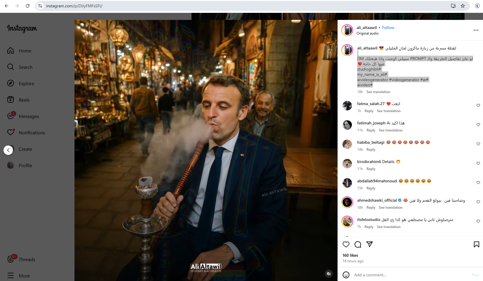 الا ان ما أضافه يبيّن بوضوح اننا امام توليد للمقطع بالذكاء الاصطناعي، اذ كتب: "لو عايز تفاصيل الطريقة والـPROMPT سيبلي كومنت وانا هبعتلك DM فيها كل حاجة".