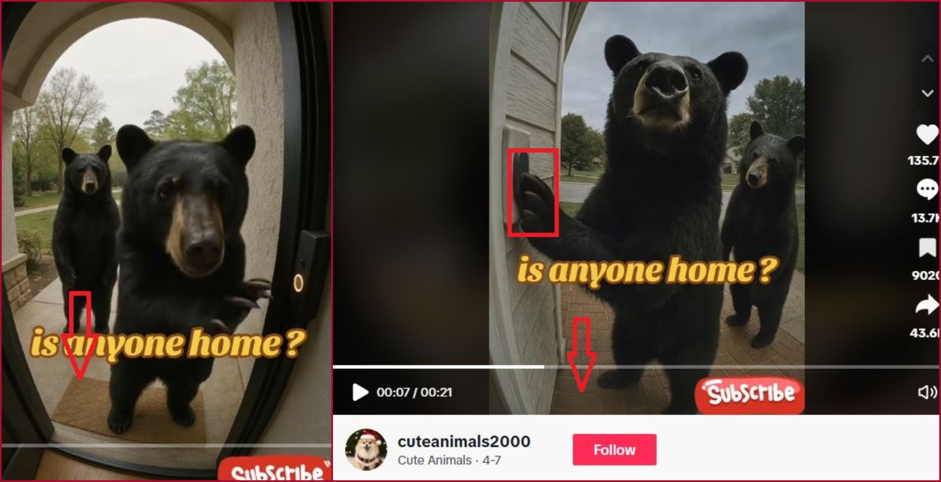 هذا الفيديو لدب يقرع جرس بيت مولد بالذكاء الاصطناعي FactCheck#