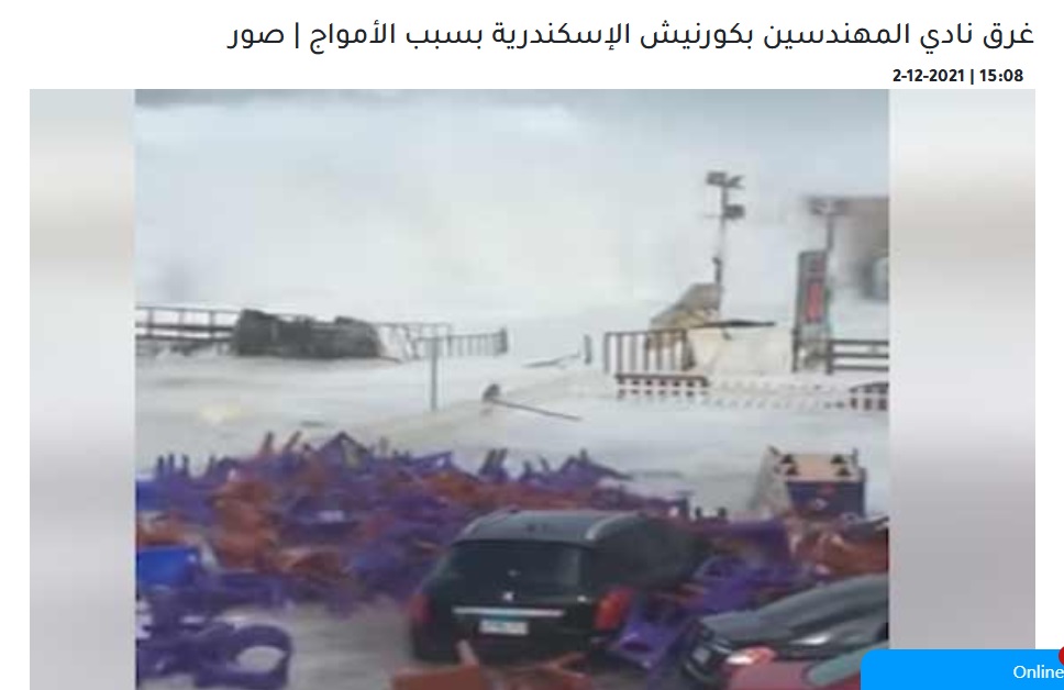 وجاء في الخبر أن ارتفاع الأمواج بالإسكندرية، والتي وصلت إلى 5 أمتار والرياح العنيفة، تسبب حينها بغرق أجزاء من نادي المهندسين المطل على البحر في منطقة سابا باشا.
