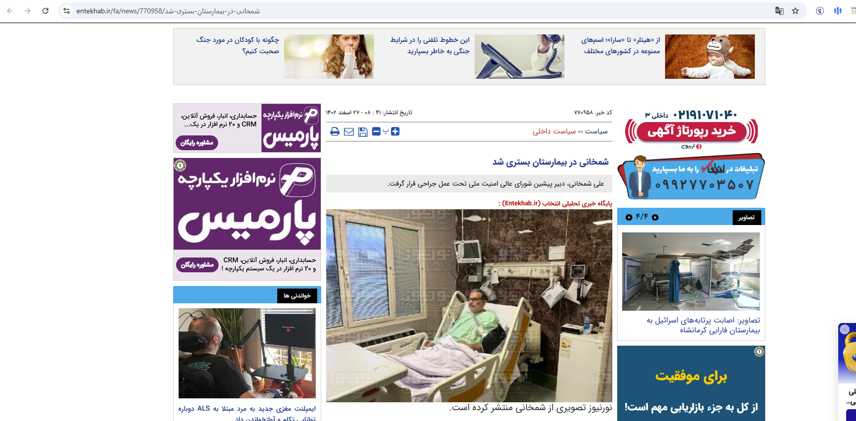 مستشار خامنئي على سرير مستشفى... هذه الصورة لشمخاني قديمة ولا علاقة لها بإصابته بالهجوم الإسرائيلي FactCheck#