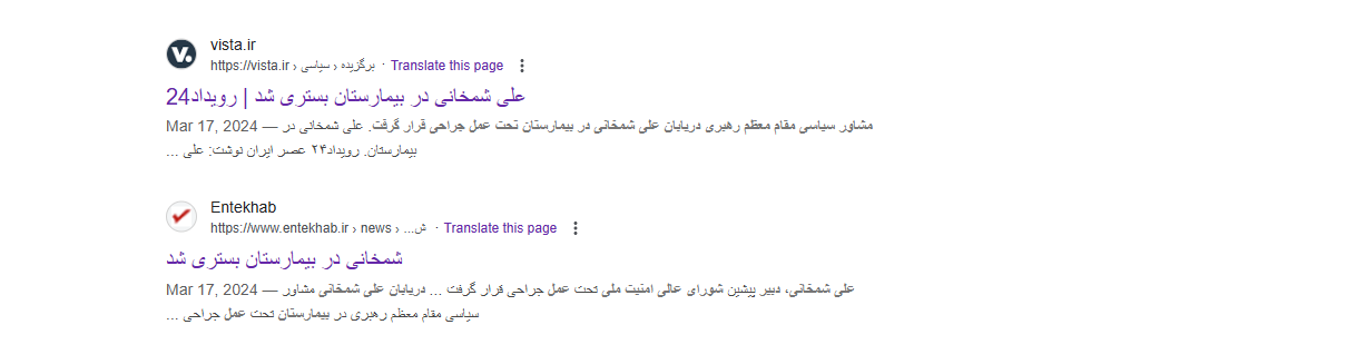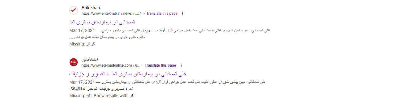 فالبحث العكسي يوصلنا الى مواقع اخبارية ايرانية عدة نشرت الصورة في 17 آذار 2024، ضمن تقايرعن خضوع شمخاني لعملية جراحية يومذاك.