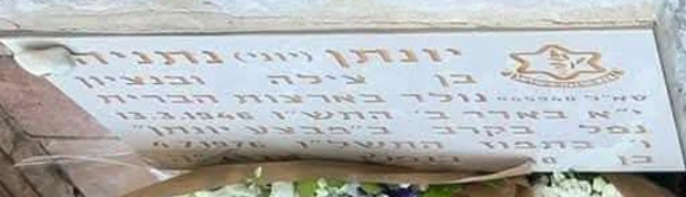 في الواقع، هذا ما كُتِب على شاهد القبر: יונתן (יוני) נתניהו בן צילה ובנציון נולד בארצות הברית... اي يوناتان (يوني) نتنياهو، ابن تسيلا وبنزيون، وُلد في الولايات المتحدة، وسقط في معركة... وفقاً لما أمكن قراءته وترجمته.