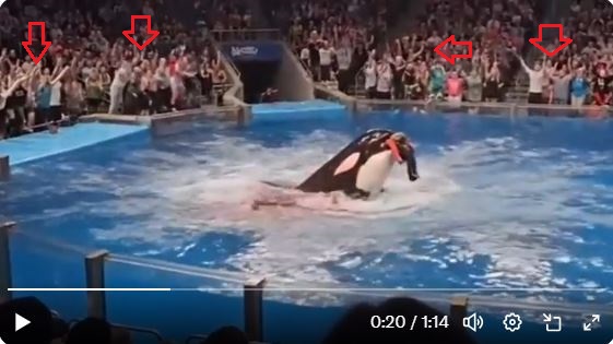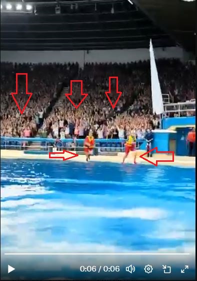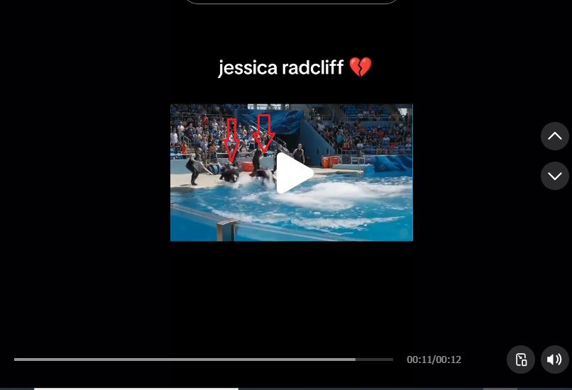 ما سترونه في فيديوات متداولة هو "لحظة هجوم حوت الأوركا على مدربته جيسيكا رادكليف"، خلال عرض في المسبح أمام مئات، وفقاً للمزاعم. "هذه هي اللحظات الاخيرة للمدربة"، وايضا "ابتسامتها الاخيرة"، قبل ان تقع المصيبة ويلتهمها الحوت. والمشاهد قاسية، دموية في عدد منها.