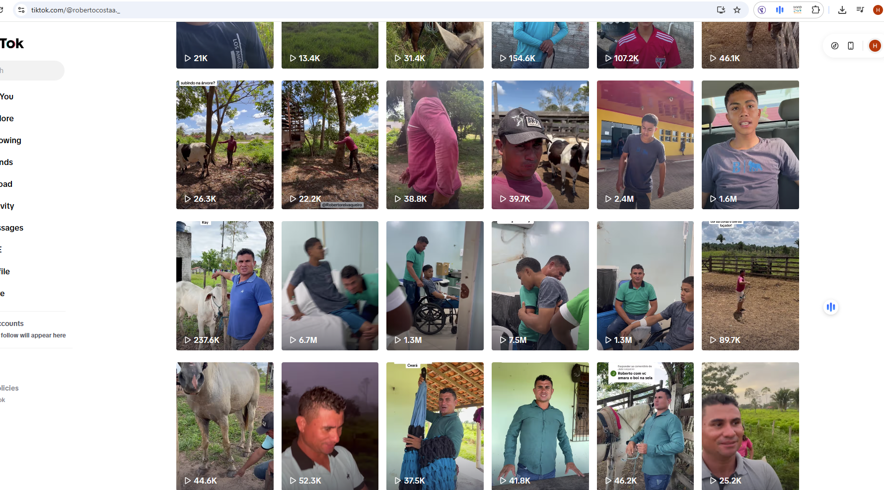 ويظهر روبرتو في فيديوات وهو يرعى البقر، او  يهتم بها، او يركب على حصان في حقل أخضر... وتبيّن أيضا في احدها ان متابعين له تفاعلوا معه بكونه في البرازيل.