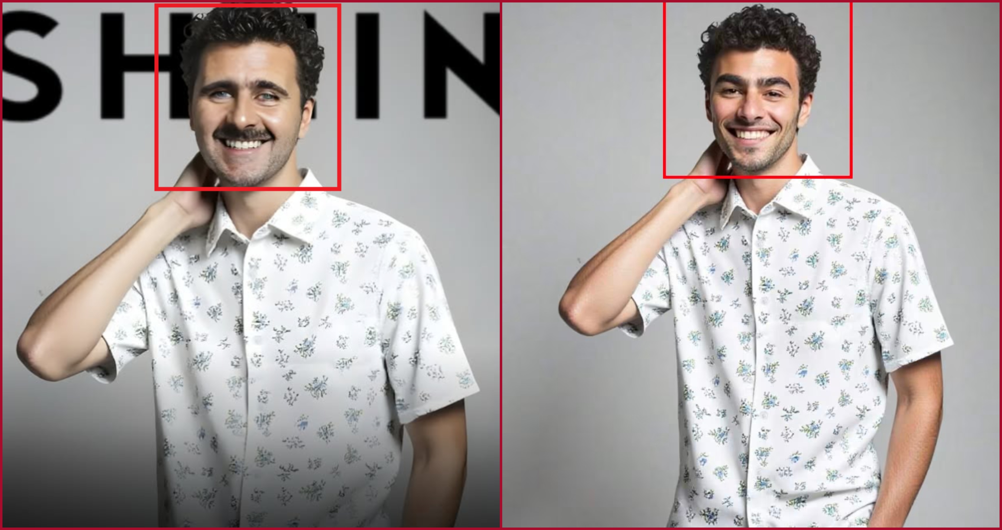 تظهر الصورة شاباً مبتسما، ارتدى قميصاً، بينما بدا خلفه اسم SHEIN. وكُتب أسفلها بخط عريض بالانكليزية: WKM NEWS- SHEIN LAUNCHES INVESTIGATION AFTER USING LIKENESS OF BASHAR AL-ASSAD TO MODEL CLOTHING، اي دبليو كاي أم نيوز: شي ان تطلق تحقيقا بعد الاستعانة بشخص يشبه بشار الاسد لعرض ازيائها.