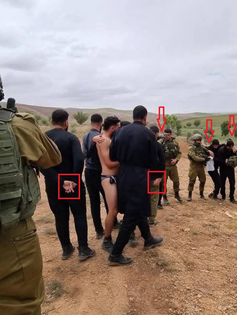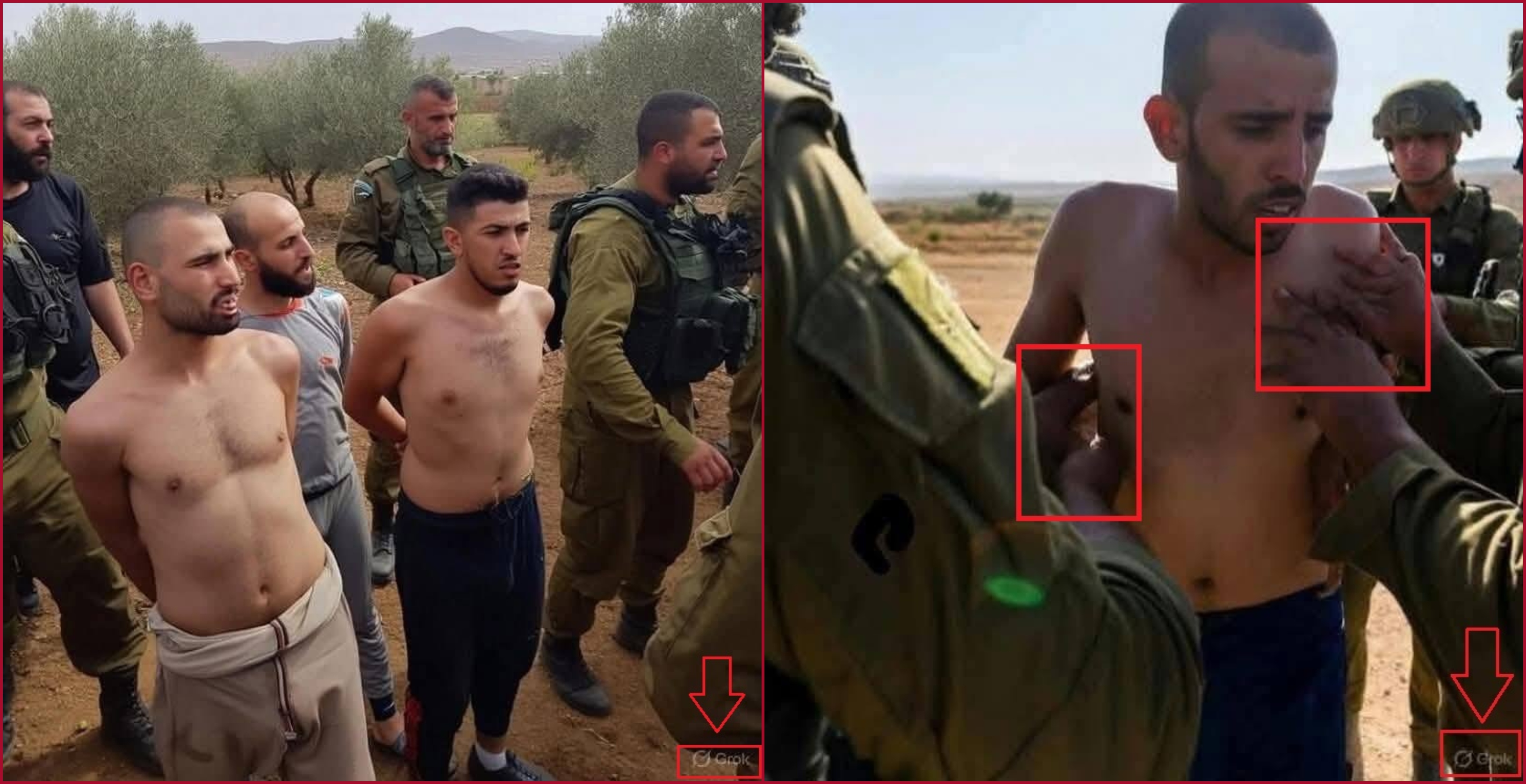 رجال جُرّدوا من قمصانهم او سراويلهم، بينما تحلّق حولهم جنود. ثلاث صور انتشرت خلال الساعات الماضية بكثافة في حسابات كتبت معها (من دون تدخل): "دورية تابعة للجيش الإسرائيلي تعتقل عناصر من الأمن العام السوري وتقوم بتجريدهم من ملابسهم وإهانتهم".