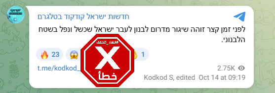 منذ قليل، شقّ الخبر طريقه الى وسائل التواصل الاجتماعي، نقلا عن "وسائل إعلام اسرائيلية"، وفقا لما كتب مستخدمون. "قبل قليل، رصد إطلاق صاروخين من جنوب لبنان باتجاه إسرائيل، لكنهما سقطا في الأراضي اللبنانية". وحظي الخبر بأكثر من الفي مشاهدة انطلاقا من قناة كوكود بالعبرية في تلغرام.