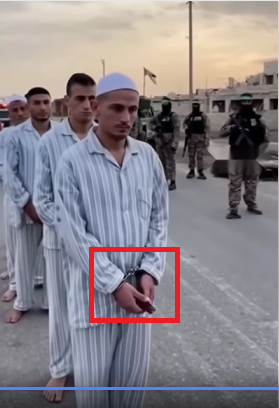 كان عناصر من كتائب القسام، الجناح العسكري لحركة حماس، يقتادون رجلا مقيد اليدين، ليتسلمه مسعفون وسط ابنية مدمرة. ثم تتعاقب مشاهد لتسليم أشخاص آخرين، بينهم نساء، كانوا يرتدون بيجامات تحت أنظار مقاتلي القسام. 30 ثانية انتشرت بكثافة في حسابات كتبت معه (من دون تدخل): "حماس تعيد الأسرى بالبيجامات الكاستور"، وايضا "يعلّمون العالم معنى أن تكون صاحب قضية وأخلاق حتى في قلب المعركة".