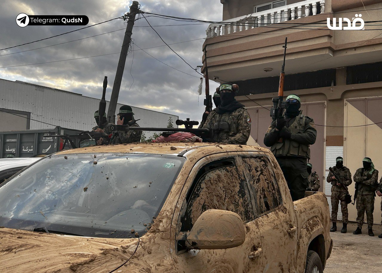تغطية صحفية: أشبه بعرض عسكري.. المئات من عناصر كتائب القسام ينتشرون في دير البلح وسط القطاع قبيل الإفراج عن ثلاثة إسرائيليين ضمن صفقة طوفان الأحرار. pic.twitter.com/utyX39Ch8z