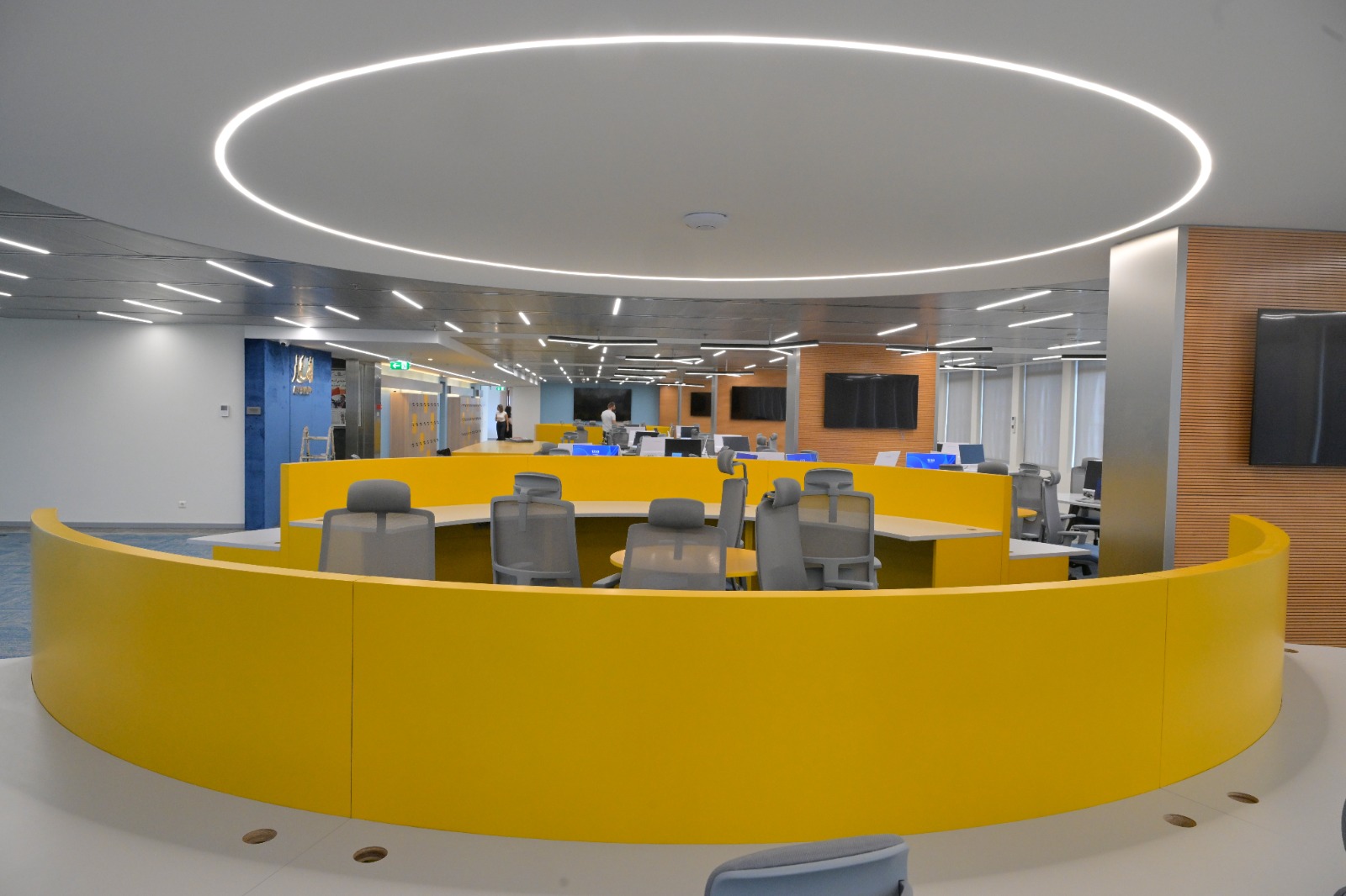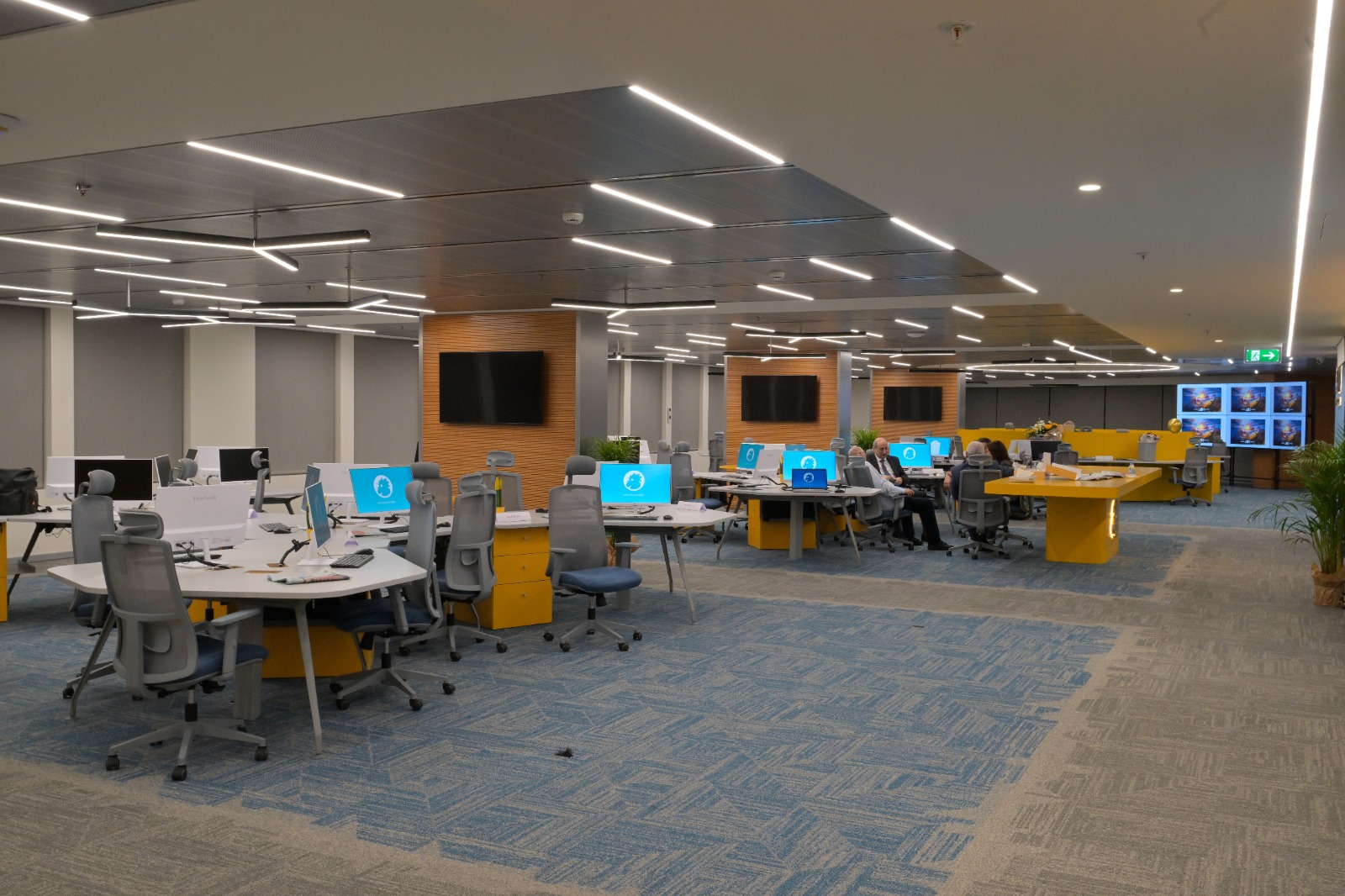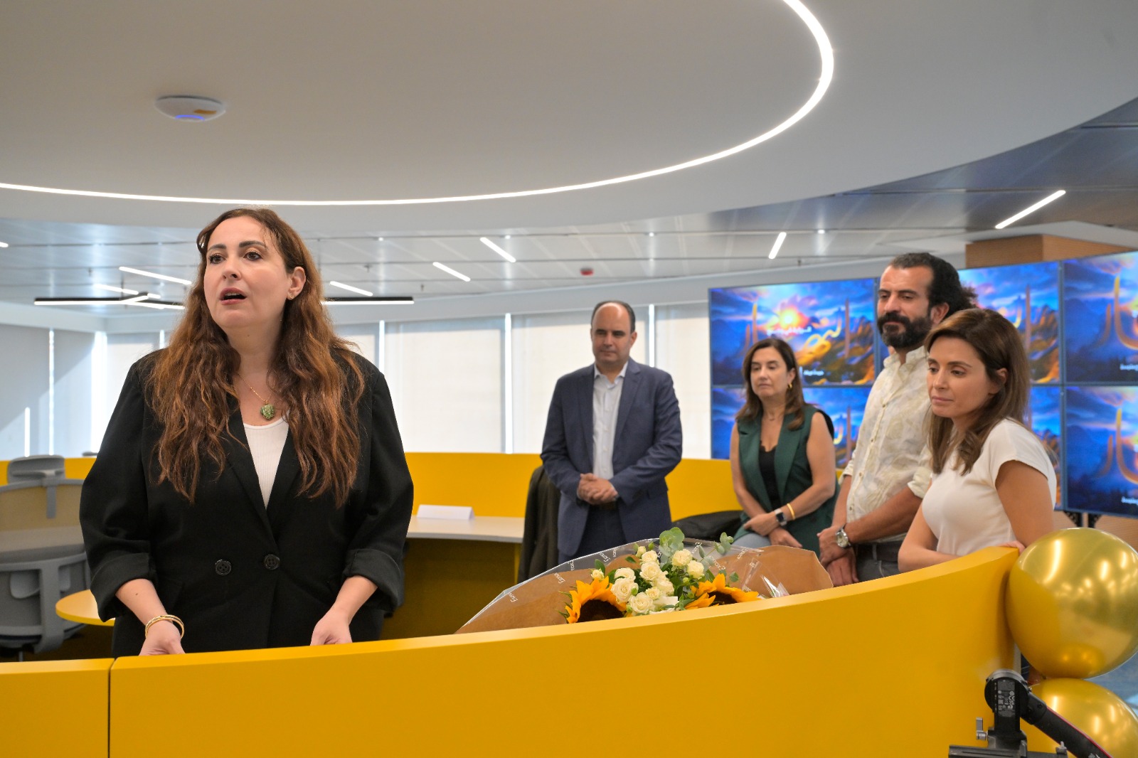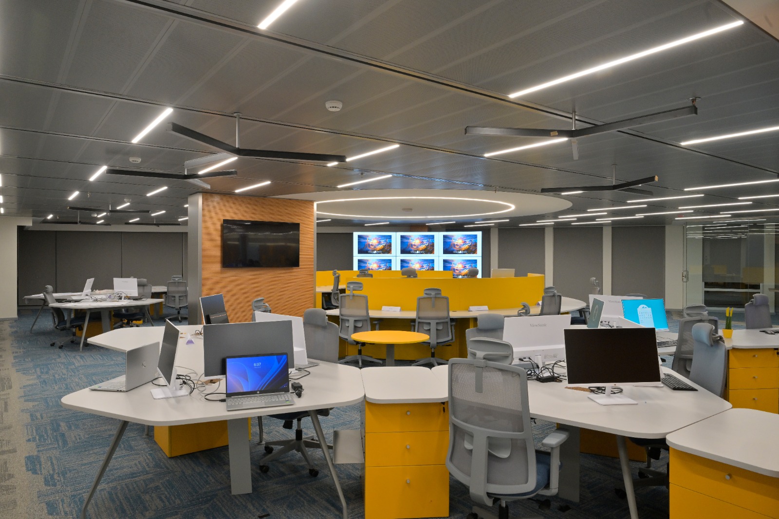 * شاشات متطورة وجدار فيديو يعرض محتوى إخبارياً مع تحليلاتلحظية.