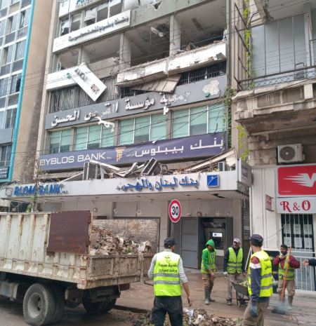 وعملت منذ ساعات الصباح الورش الخاصة في بلدية صيدا على إزالة الحجارة والركام الناجم عن الصاروخ الاسرائيلي، وتفقد المكان رئيس جمعية تجار صيدا علي الشريف واطلع على حجم الاضرار والخسائر التي لحقت بأصحاب المبنى والمصارف وبعض المحال التجارية، وكان رئيس بلدية صيدا الدكتور حازم بديع تفقد برفقة عقيلته المحامية مايا مجذوب المكان بعد وقت قصير على استهداف بناية المصارف.