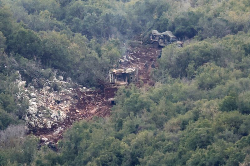 جرافة إسرائيلية تقوم بأعمال جرف في منطقة بالقرب من كفرشوبا في الجنوب اللبناني. (أ ف ب)