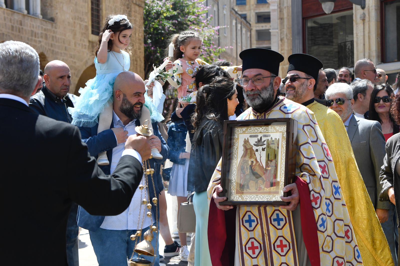 وبعد القداس طاف المؤمنون مع أطفالهم حاملين الشموع وغصون الزيتون بزياح في ساحة النجمة. وبعد قراءة الإنجيل ألقى عظة قال فيها: "نحن أيضا نلتئم اليوم لنستقبل المخلص الآتي لينير حياتنا بآلامه الخلاصية. سبت لعازر وأحد الشعانين يشكلان تذوقا مسبقا للفرح الذي يعقب أسبوع الآلام. فبيت عنيا، مكان إقامة لعازر من الموت، هي نقطة انطلاق يسوع في صعوده إلى أورشليم ليقدم نفسه ذبيحة طوعية من أجل خلاص العالم".