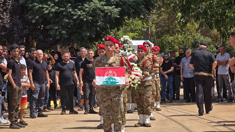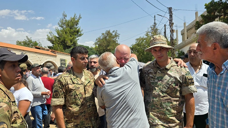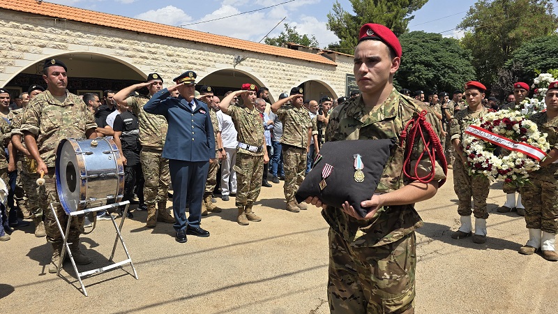 وبين دموع الفقد وزغاريد الفخر، سجّي جثمان الشهيد لبعض الوقت داخل حسينية البلدة بمشاركة كل اطيافها مسلمين ومسيحيين، لينطلق الموكب بعدها في مأتم مهيب تقدّمه العميد جهاد ابو علي، ممثلاً وزير الدفاع الوطني وقائد الجيش، بمشاركة حاشدة من أهالي البلدة ورفاق السلاح، قبل أن يوارى في مدافن البلدة.