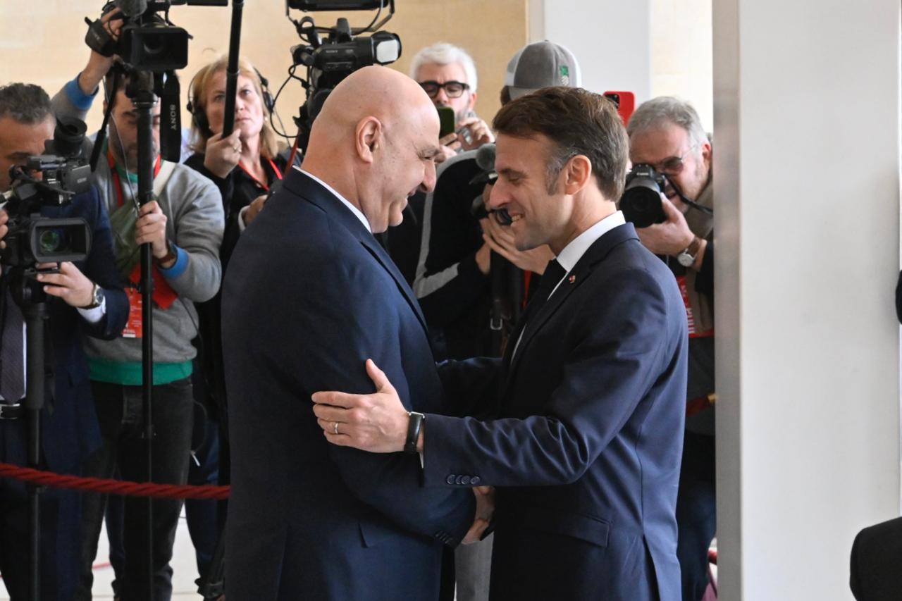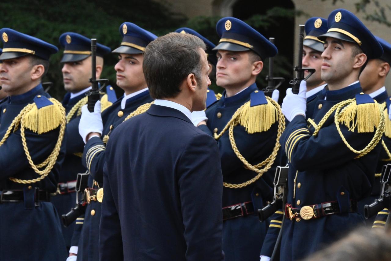 على السجادة الحمراء وعزف النشيدين اللبناني والفرنسي، استقبل الرئيس اللبناني المنتخب جوزف عون نظيره الفرنسي إيمانويل ماكرون في زيارة تهنئة من المتوقع أن تؤدي الى خلوة رباعية تجمع رئيس حكومة تصريف الأعمال نجيب ميقاتي ورئيس مجلس النواب نبيه برّي.