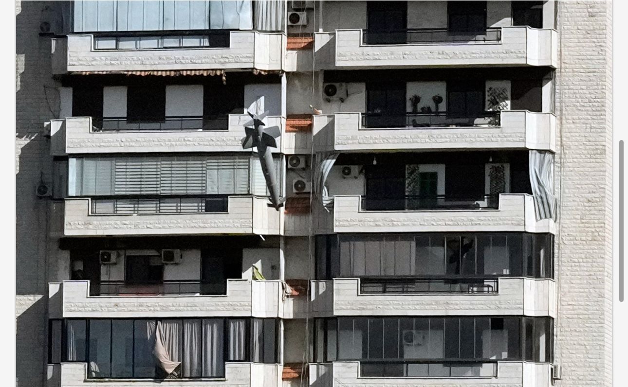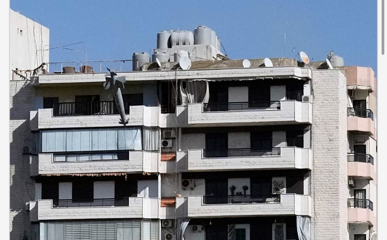 أظهرت مقاطع مصورة متداولة لحظة سقوط الصاروخ على مبنى في الطيونة وتدميره بالكامل.