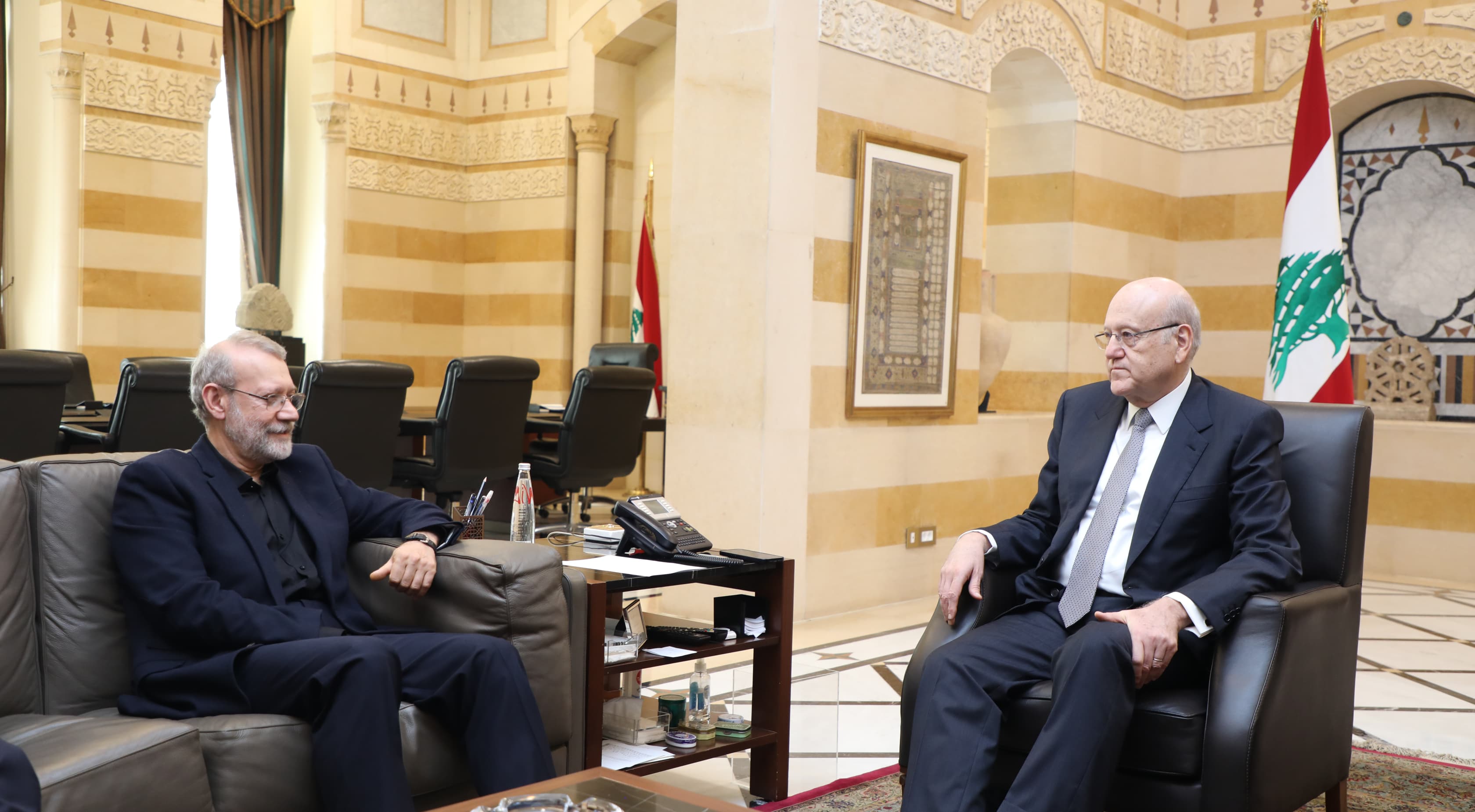 واستهلّ كبير مستشاري المرشد الأعلى للجمهورية الاسلامية الإيرانية علي لاريجاني، زيارته الرسمية إلى بيروت، من السرايا الحكومية، حيث التقى رئيس حكومة تصريف الأعمال نجيب ميقاتي، في حضور المندوب الخاص لوزير الخارجية الإيرانية في منطقة الشرق الاوسط السفير محمد رضا شيباني، ومستشاري ميقاتي الوزير السابق نقولا نحاس والسفير بطرس عساكر وزياد ميقاتي.