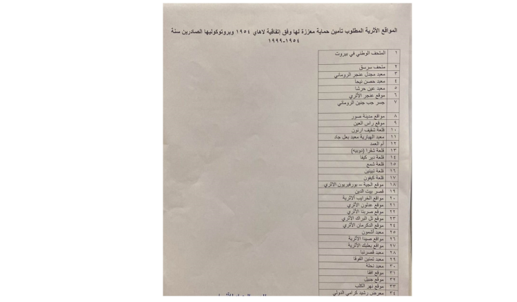 صدر عن وزير الثقافة في حكومة تصريف الاعمال القاضي محمد وسام المرتضى البيان الآتي: "قبل لحظات قرّرت منظّمة اليونسكو منح الحماية المعزّزة ضدّ العدوان الإسرائيلي لأربعة وثلاثين موقعًا أثريًّا لبنانيًّا بناءً على طلب وزارة الثقافة".