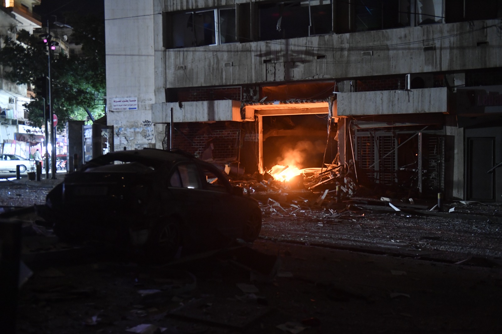 كما استهدف مبنى القرض الحسن في منطقة النويري بجوار كورنيش المزرعة في وقت متأخر من الليل.