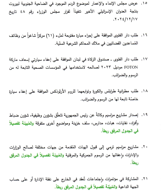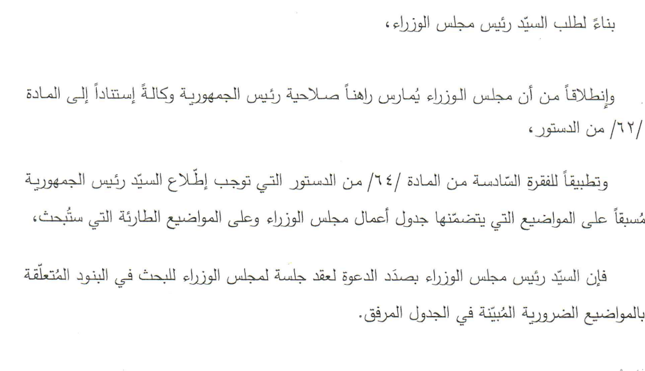 أعلنت الامانة العامة في مجلس الوزراء أن رئيس الحكومة نجيب ميقاتي بصدد الدعوة الى عقد جلسة لمجلس الوزراء للبحث في البنود المتعلقة بالمواضيع الضرورية المبينة أدناه.
