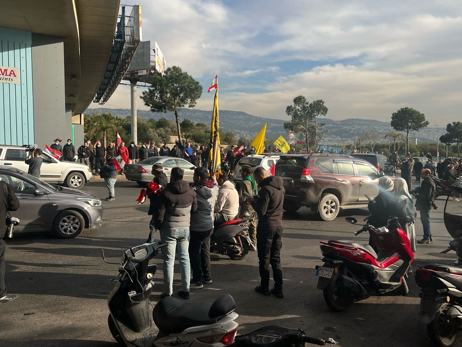 تلبيةً لدعوة "حزب الله" الرسمية لاعتصام شعبي على طريق مطار رفيق الحريري الدولي- بيروت، عصر اليوم، قطع مناصرون لـ"حزب الله" الطريق بالاتجاهين عند محلّة الكوكدي.