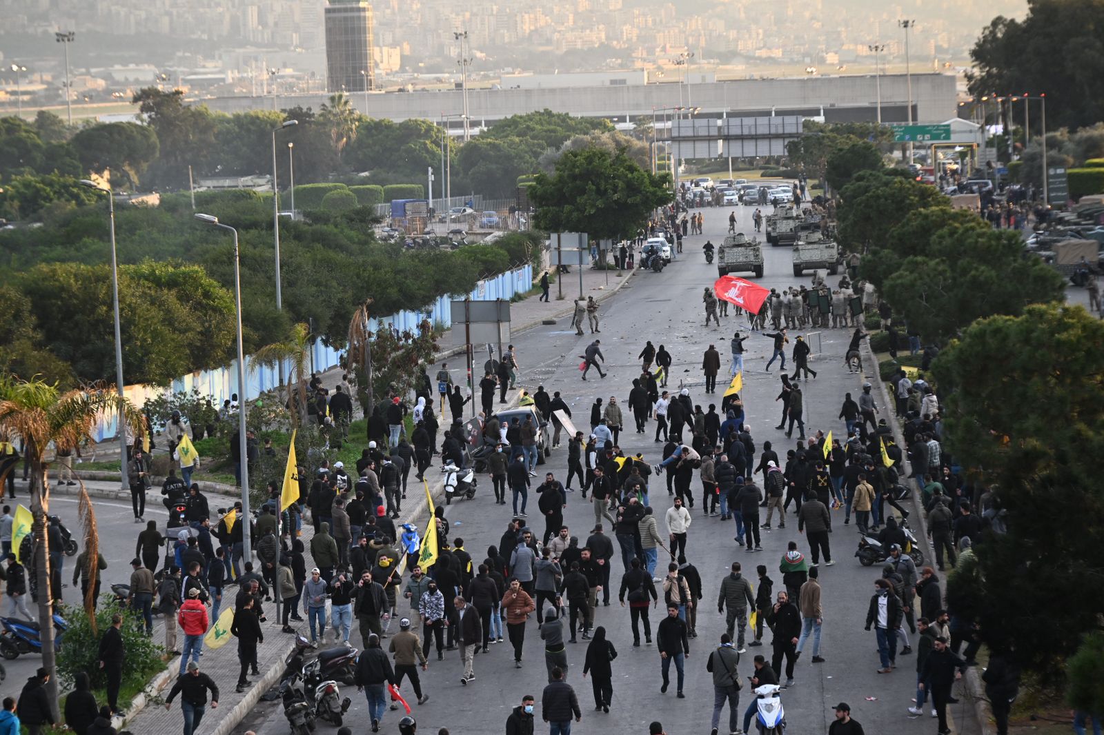 مشاهد إضافية للفوضى على طريق مطار بيروت خلال اعتصام "حزب الله" pic.twitter.com/XZJaQfYMi6