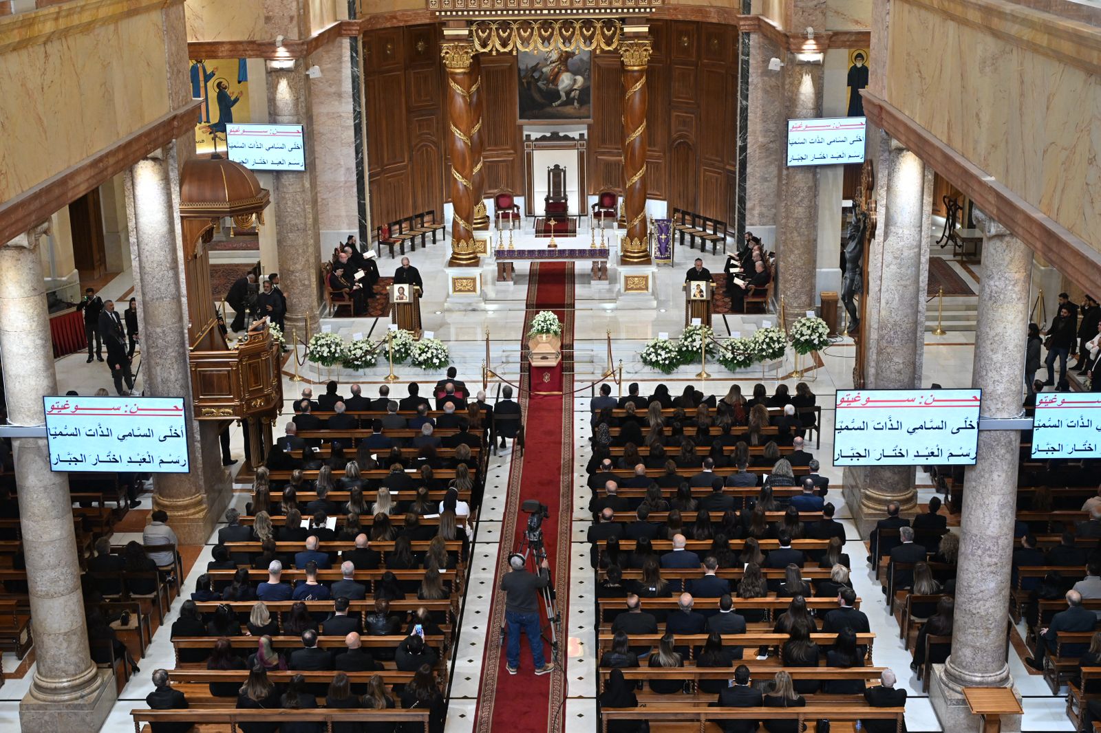 خلال مشاركته في جنازتها في كاتدرائية مار جرجس في وسط بيروت اليوم الأحد.