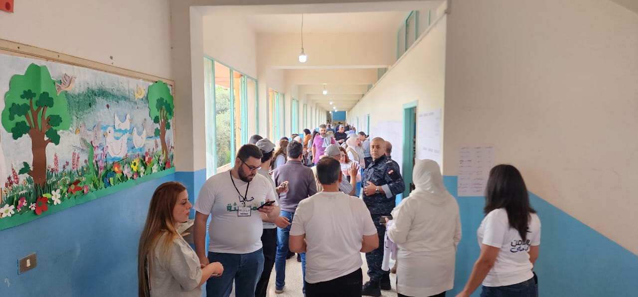 حشود للمنتخبين أمام أحد مراكز الاقتراع في بلدة فنيدق - عكار