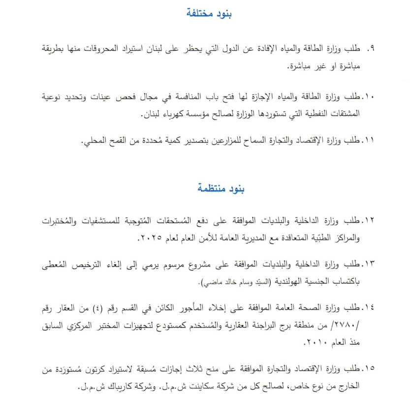 إليكم أبرز البنود على جدول مجلس الوزراء اللبناني الذي ينعقد الجمعة