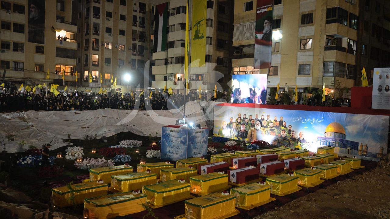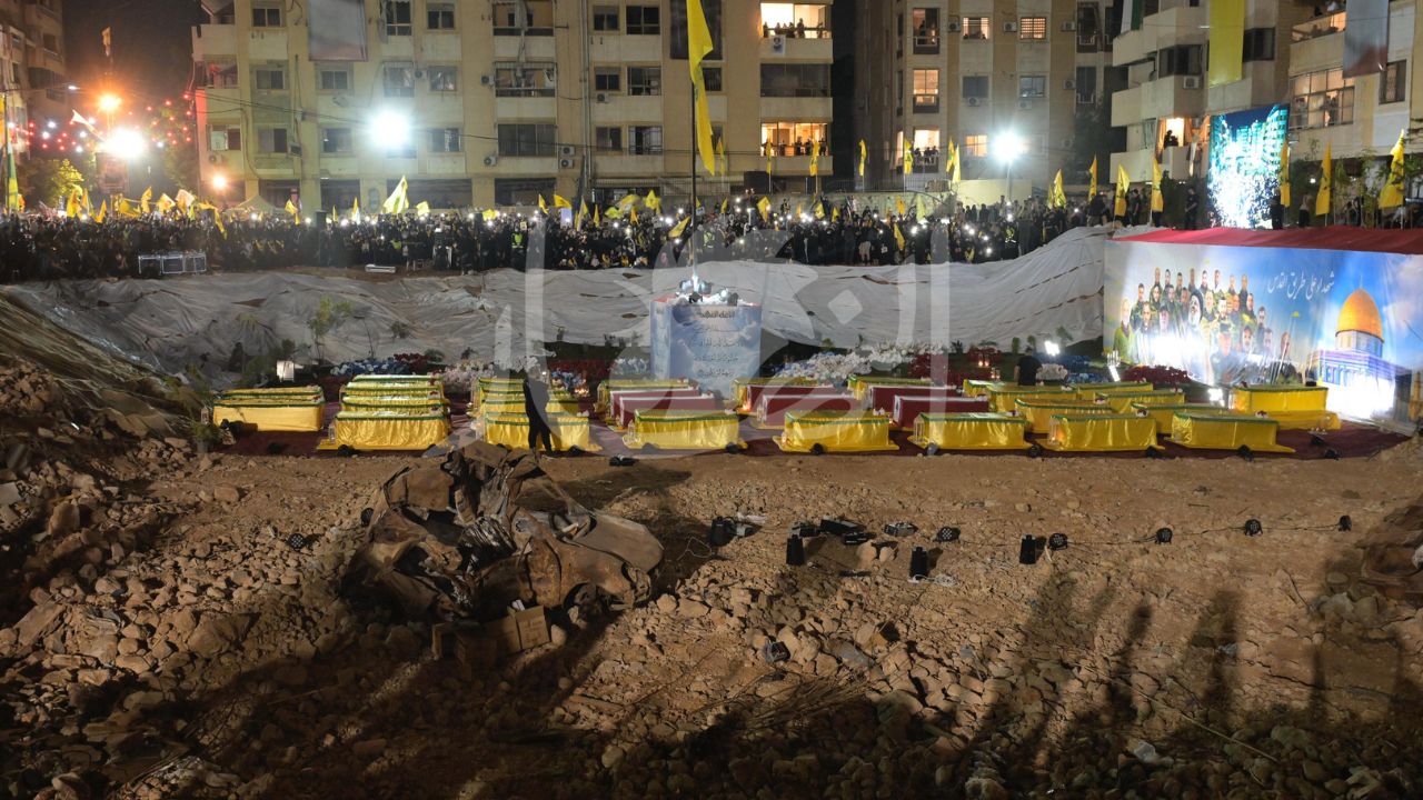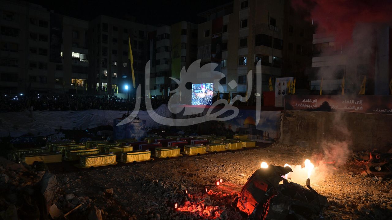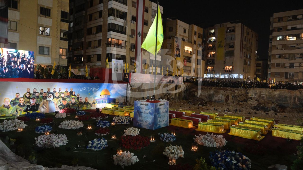 أحيا مناصرو "حزب الله" الذكرى السنوية الأولى لاغتيال الأمين العام السيد حسن نصر الله، في موقع اغتياله في الضاحية الجنوبية لبيروت.