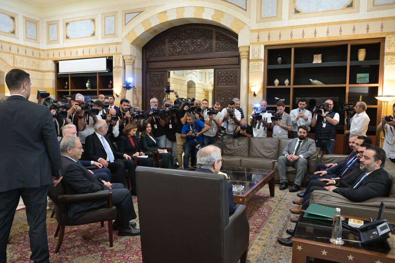 وعقد في السرايا الحكومية، اجتماع بين رئيس مجلس الوزراء الدكتور نواف سلام ونائب رئيس مجلس الوزراء الدكتور طارق متري ووزيري الخارجية والمغتربين يوسف رجي والعدل عادل نصّار، مع وزير الخارجية والمغتربين في الجمهورية العربية السورية أسعد حسن الشيباني ووزير العدل الدكتور مظهر الويس والوفد المرافق.