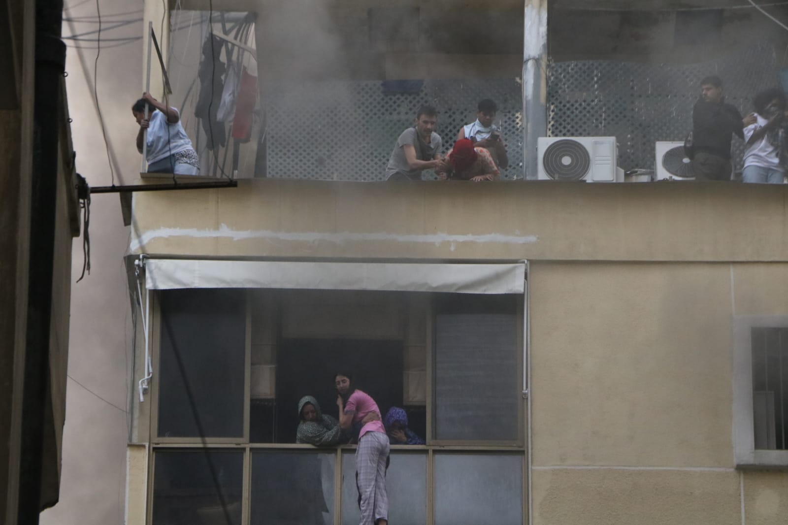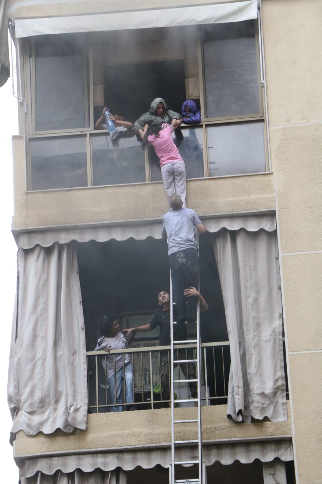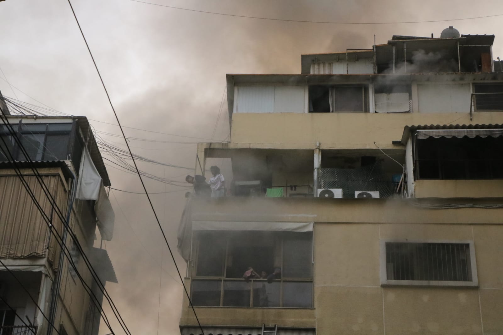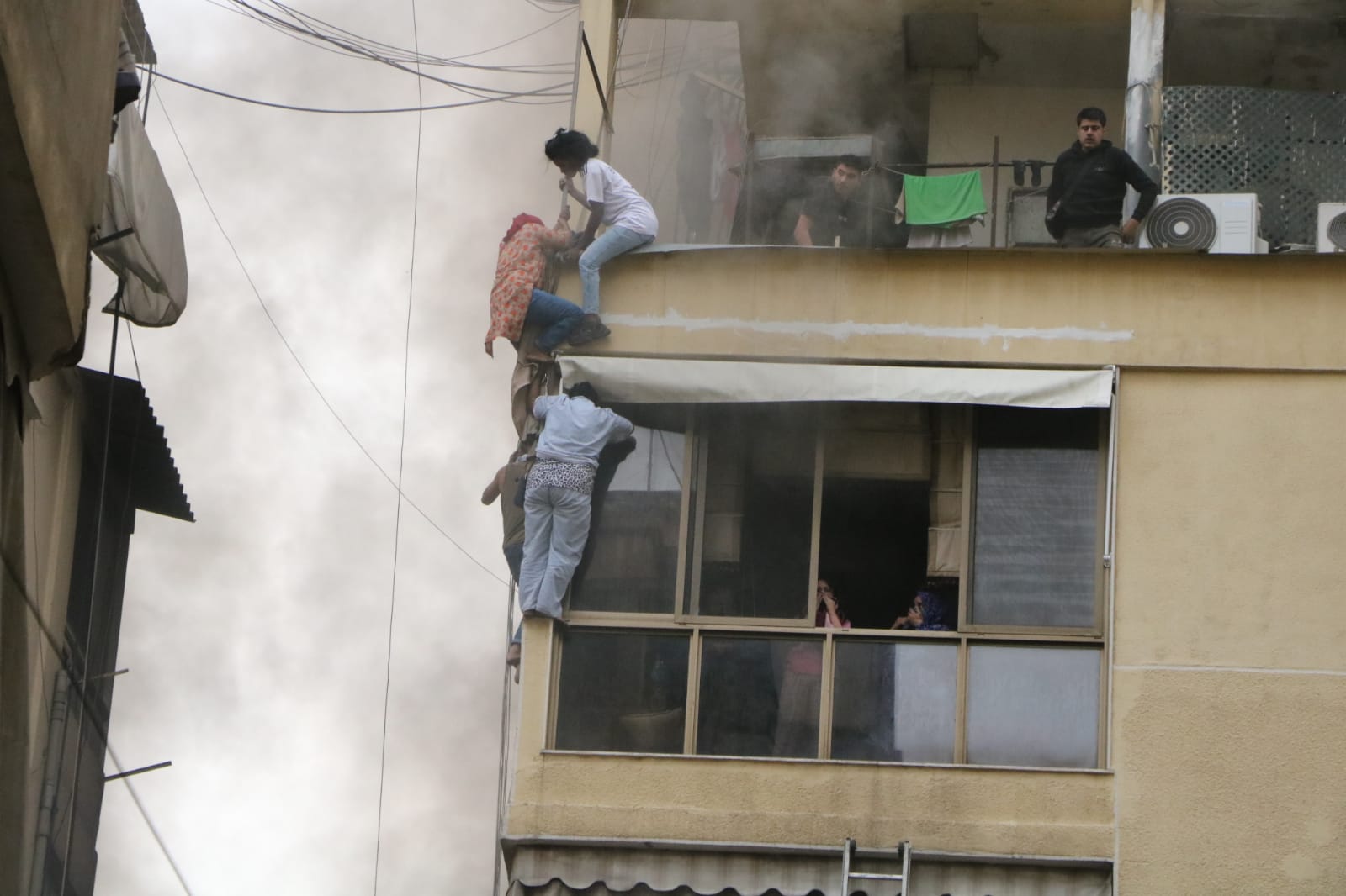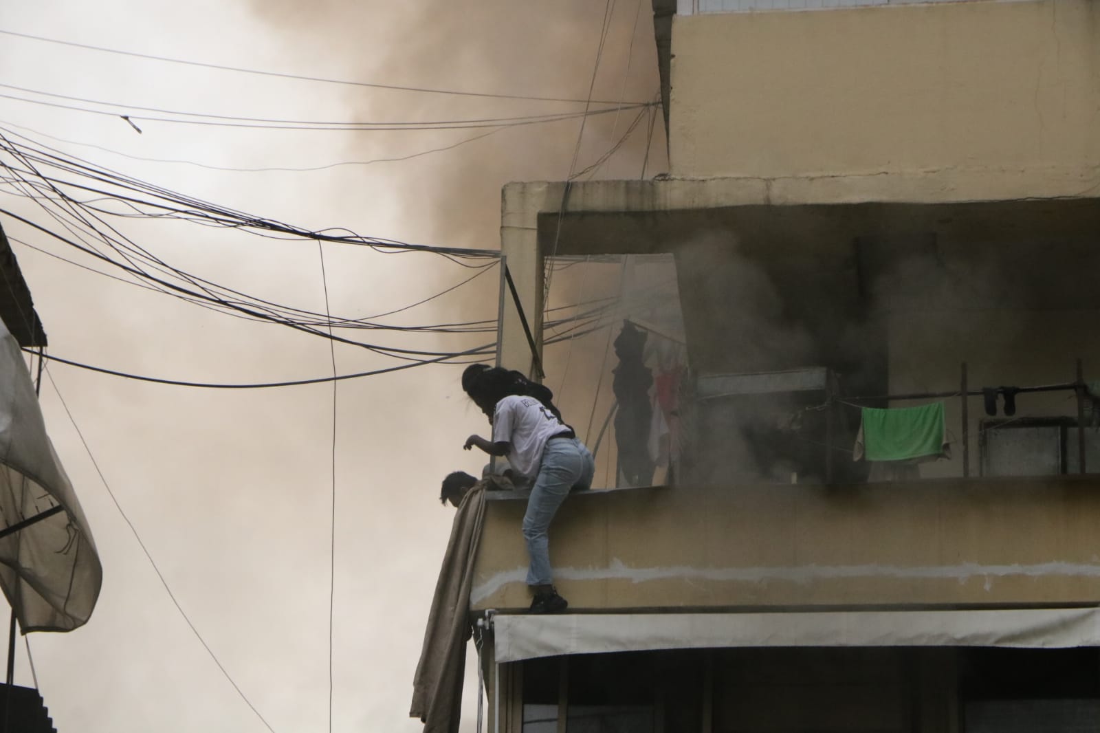 عدسة "النهار" في منطقة الحمراء... دخان الحريق يدخل المنازل ويتسبّب بحالات اختناق وإخلاء السكّان من الشرفات