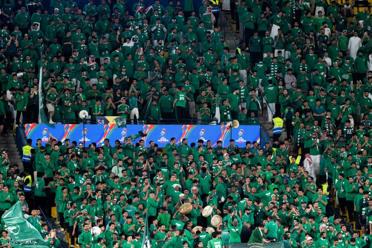 جمهور السعودية خلال لقاء الصين (أ ف ب)