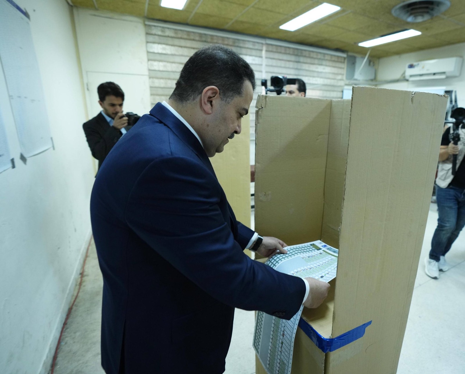 رئيس الوزراء العراقي محمد شياع السوداني يدلي بصوته في انتخابات مجلس النواب في العاصمة بغداد
